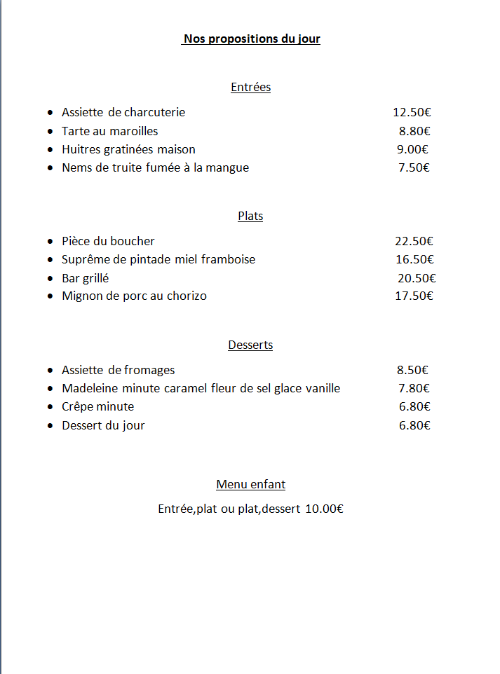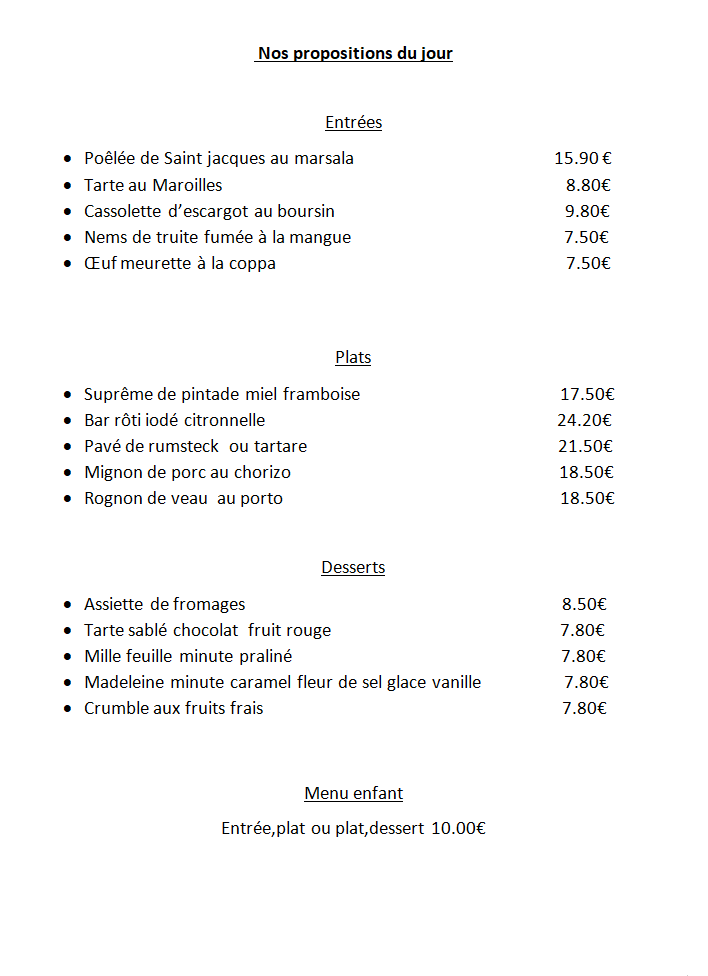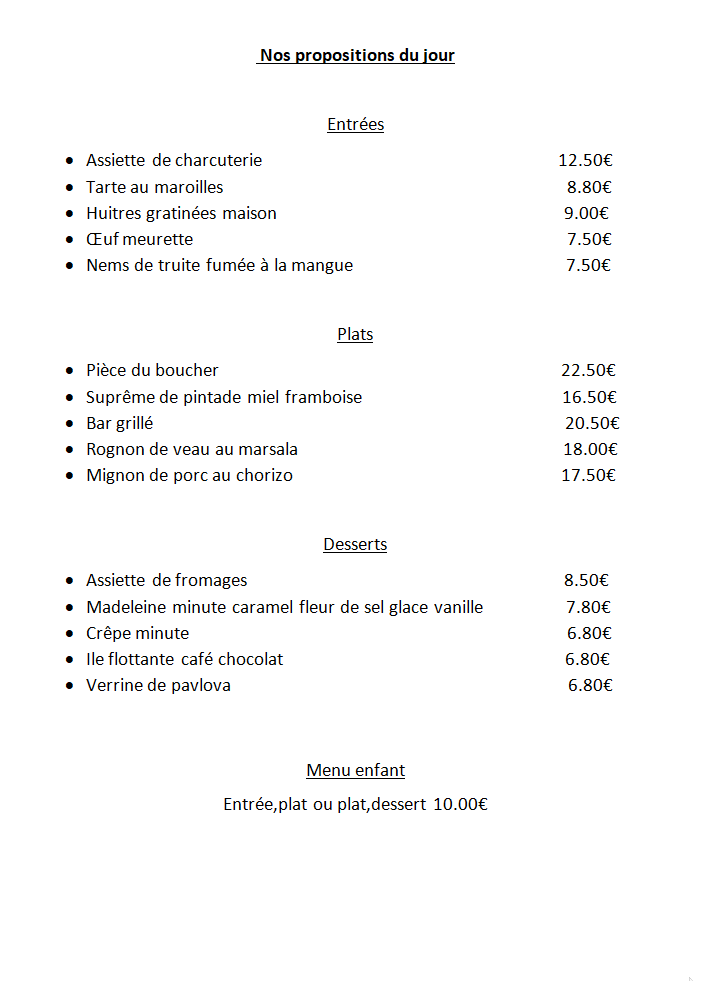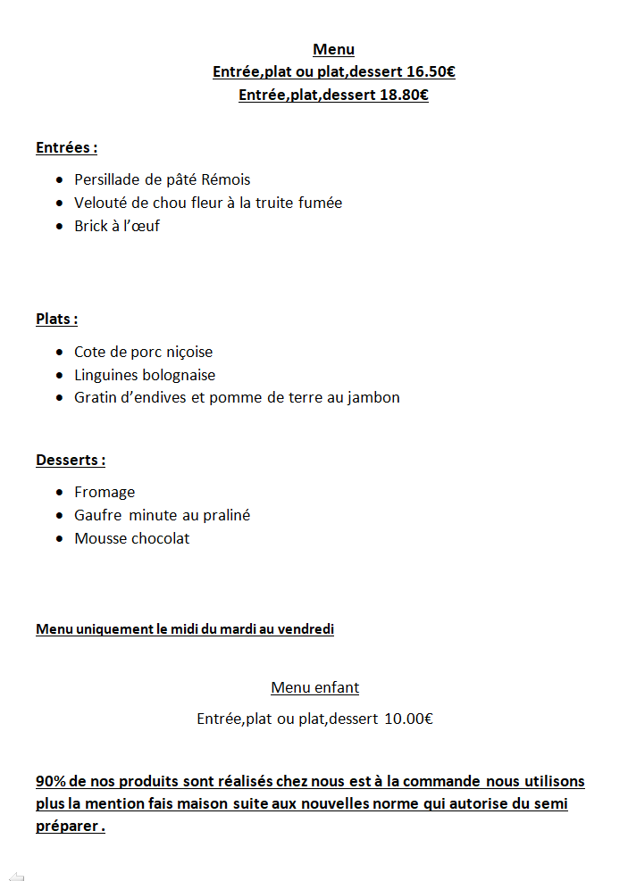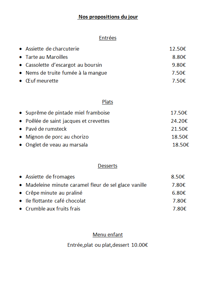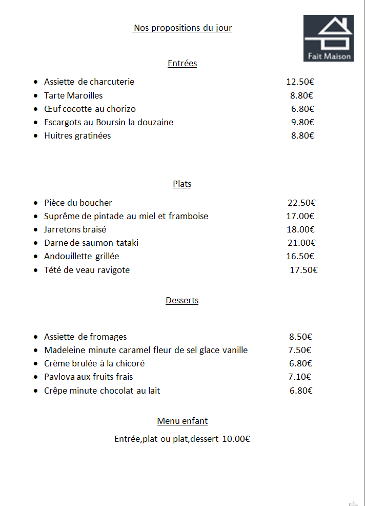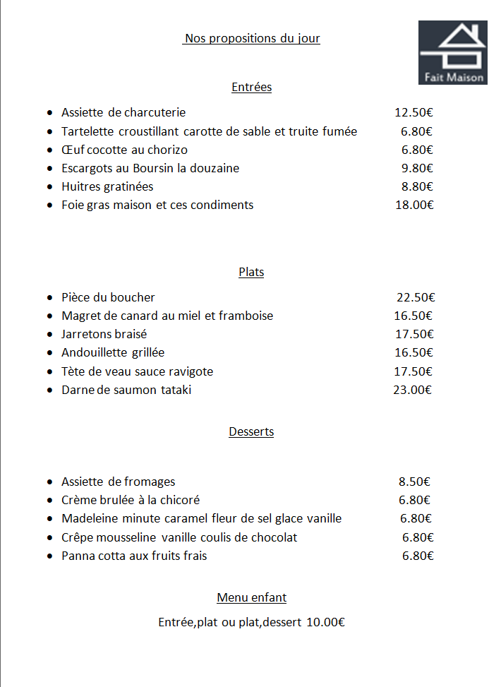 N'hésitez pas à nous contacter pour effectuez une réservation ou connaitre notre plat du jour !